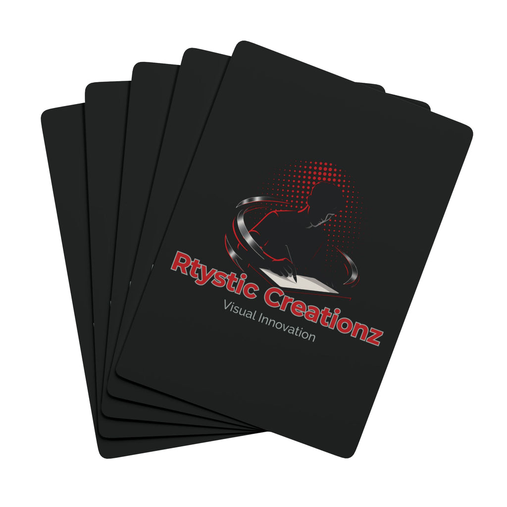 These poker playing cards bring a spark to any game night with the Rtystic Creationz logo printed on every back. The deck feels lively in your hands — colors pop, cards glide, and the tactile weight of premium 300 gsm coated cardstock makes shuffling and dealing satisfying. Sized to the familiar poker dimensions, the set includes 52 crisp, evenly cut cards plus two jokers, all housed in a clear acrylic box that shows off the artwork while keeping the deck protected. Whether you’re stacking chips at a kitchen table or teaching friends how to shuffle, these cards add a personal, crafted touch that reads as intentional and fun.