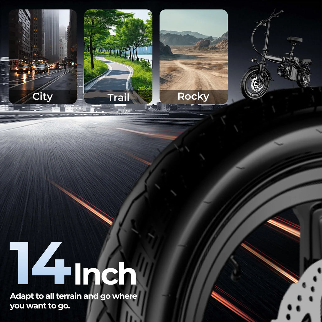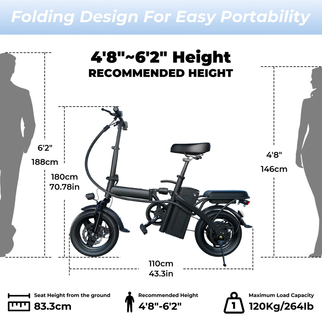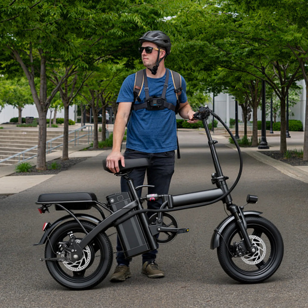 500W Dual Disc Brake Foldable Electric Bicycle 14 Inch 48V10.4Ah Battery 22 Miles Range 20MPH Max Speed with Seat And Basket 1Year Warranty