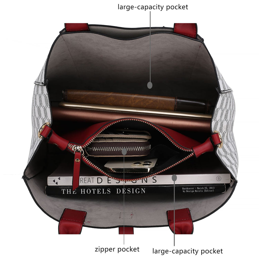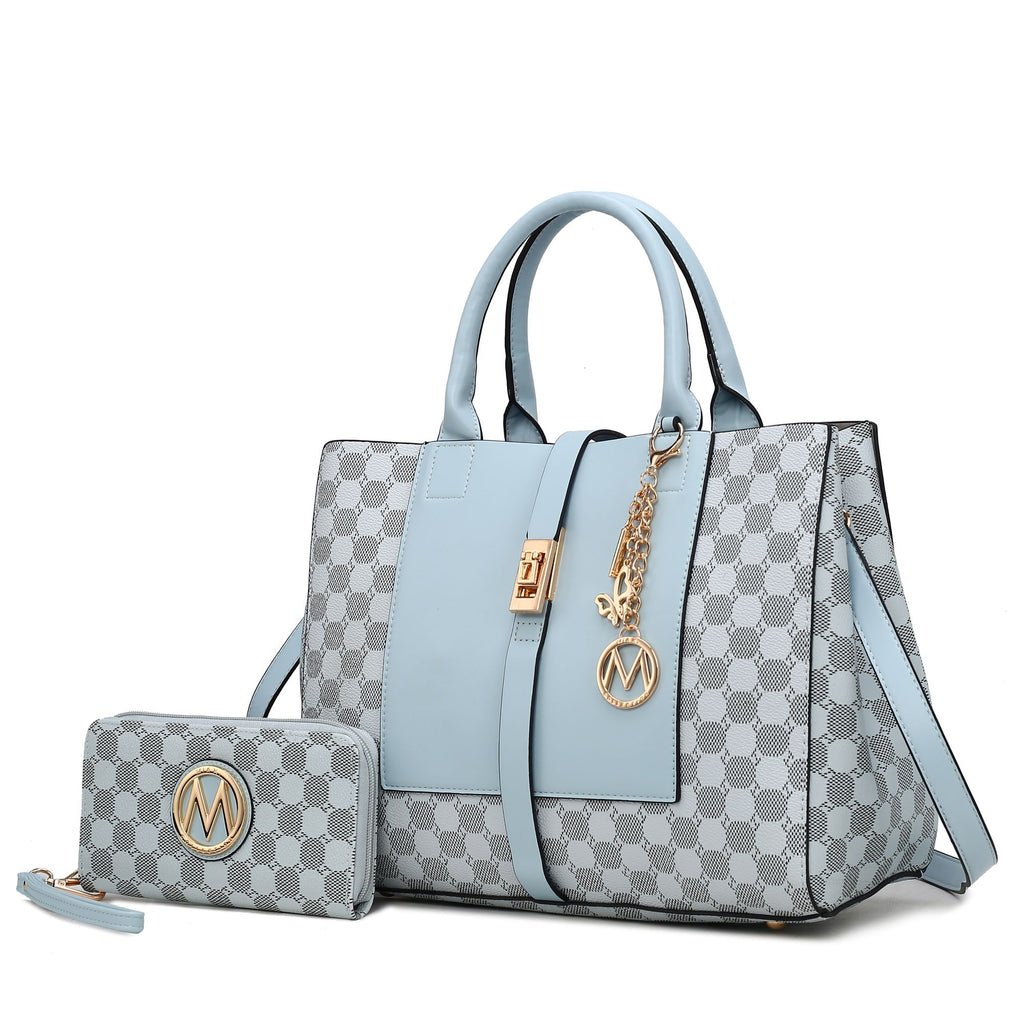 Versatile Print Satchel Handbag with Convenient Wallet Accessory